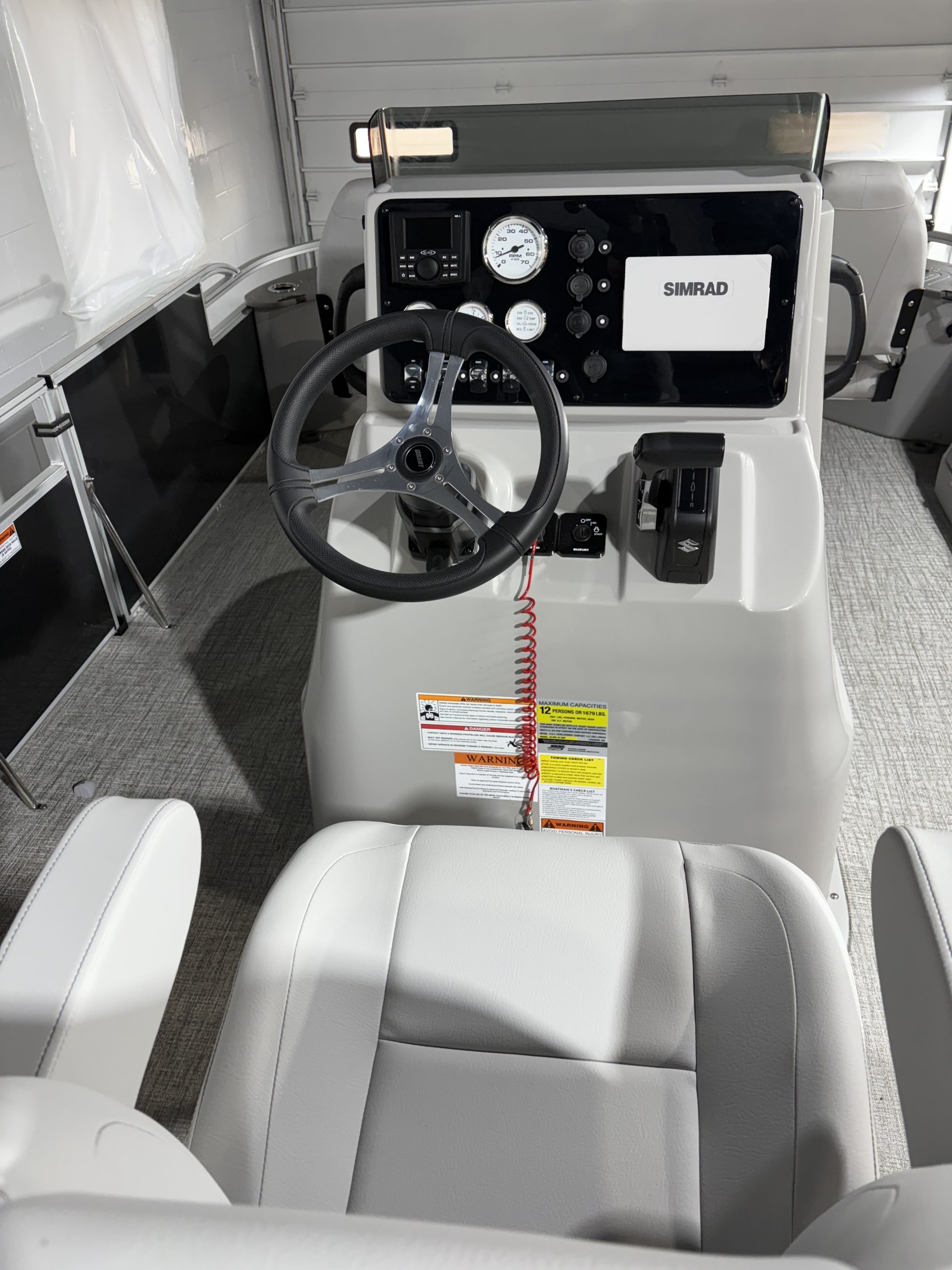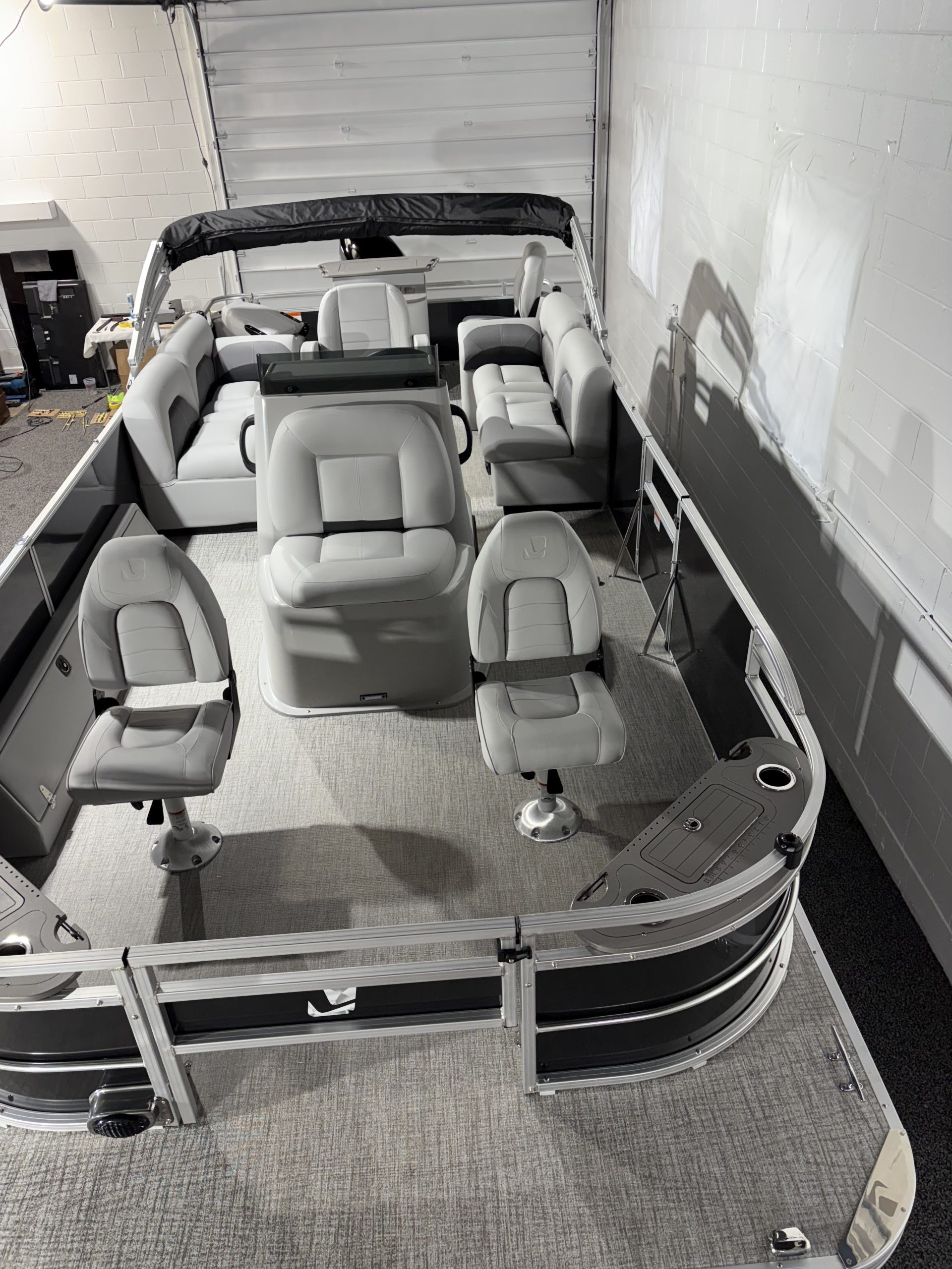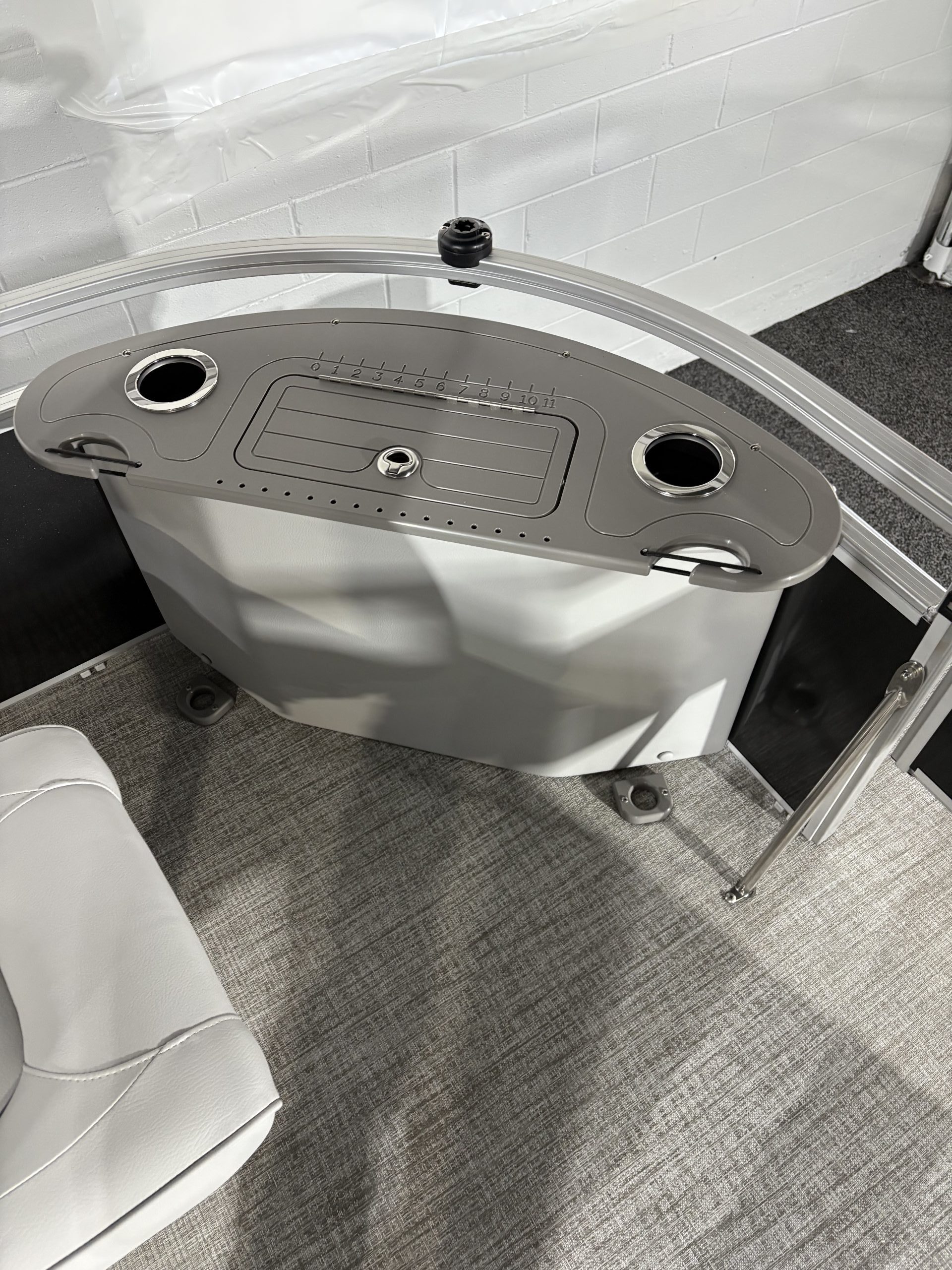 The 23 CC is a fishing machine. The Center Console Helm Station has a GPS Fish Finder and large livewell under the seat in front. The 4 perimeter fishing chairs are waiting for some action.